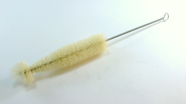 管刷使用羊毛作為毛料,比起同線徑的人工毛料來得柔軟,且因為具有毛本身具有毛鱗的關係,較能夠吸附液體,故可以較有效率地清潔試管管壁。